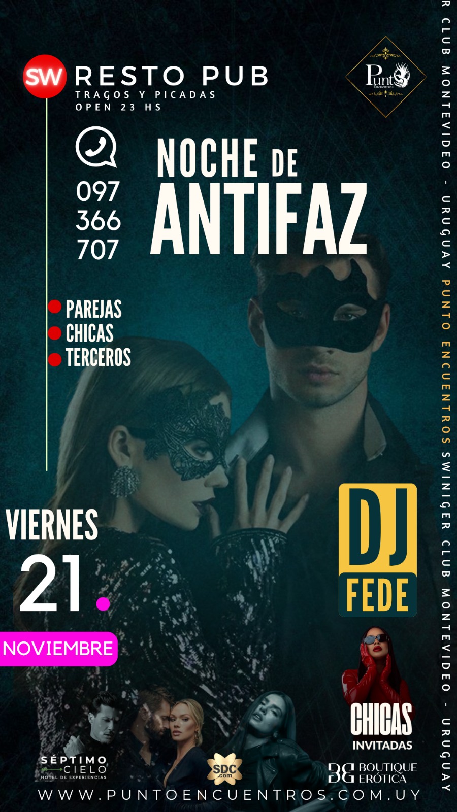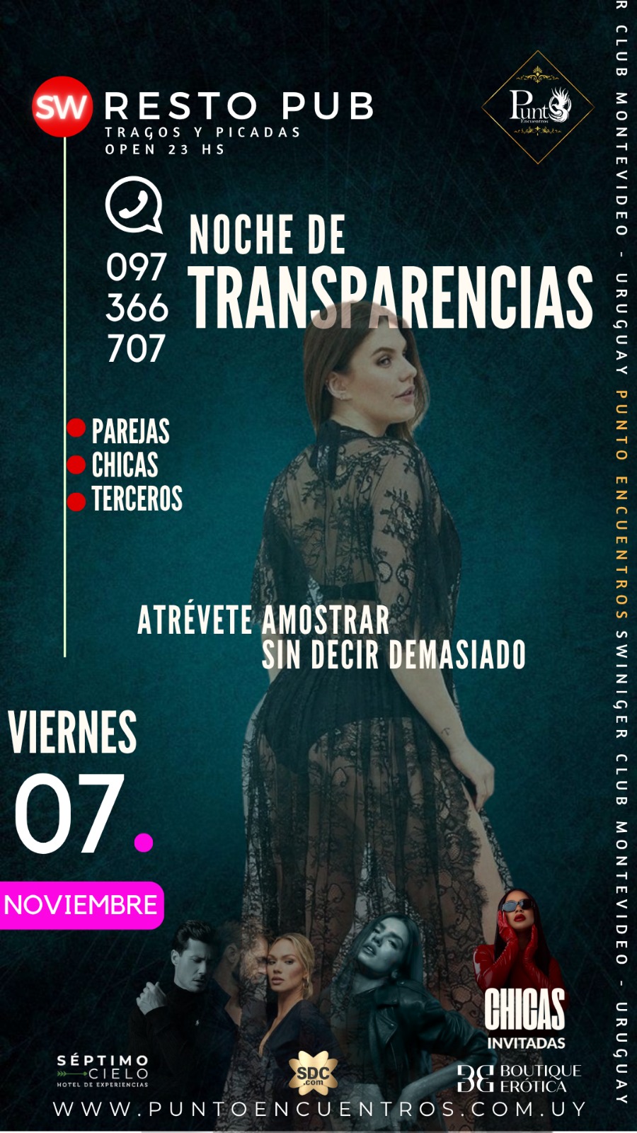 Cada noche en Punto Encuentros es una experiencia única. Desde temáticas sensuales hasta encuentros exclusivos, te invitamos a descubrir un ambiente de libertad, erotismo y diversión. Explora nuestras propuestas y prepárate para noches inolvidables.